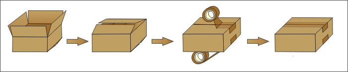 人工推入——————自動(dòng)折蓋——————上下封箱———————封箱完成